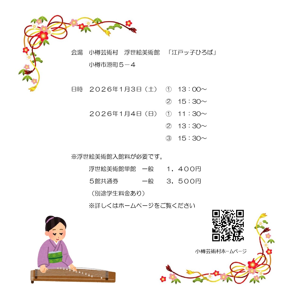 小樽芸術村 浮世絵美術館 新春ミニコンサート「琴の調べ」(1/3・4)