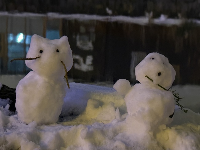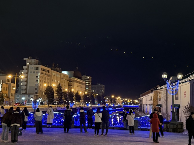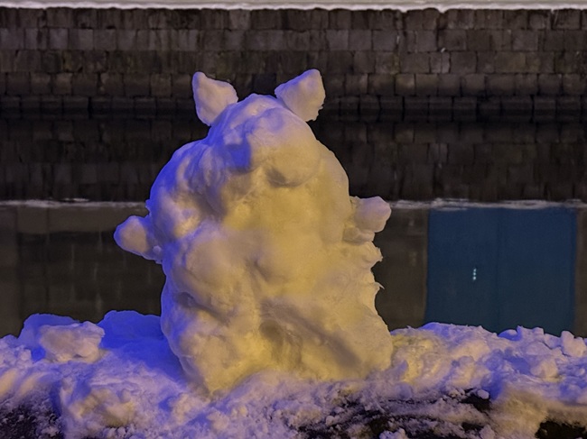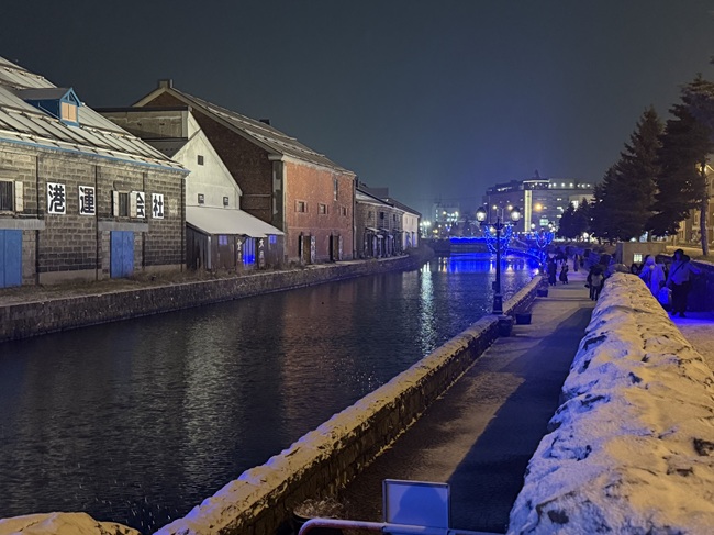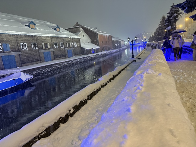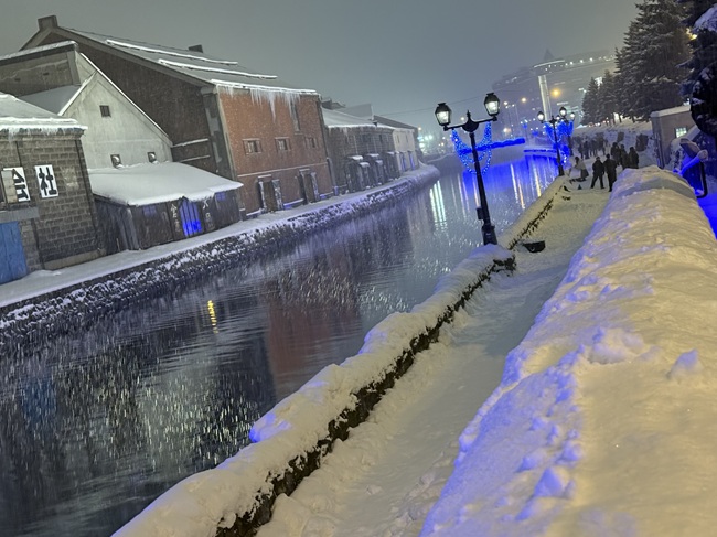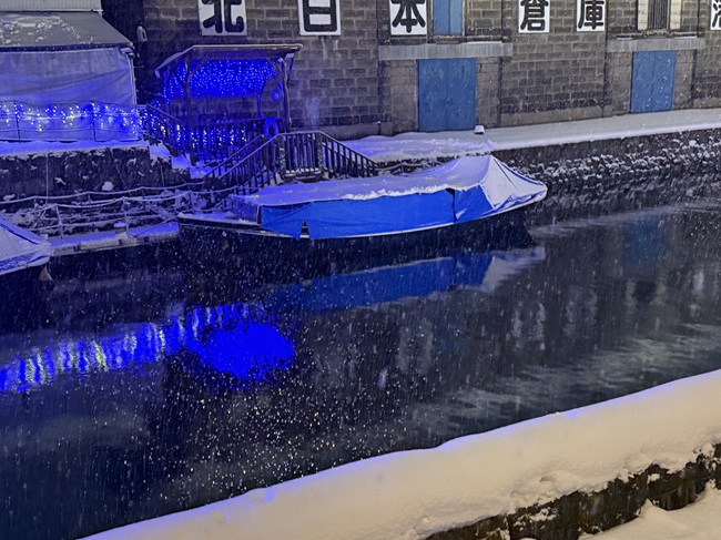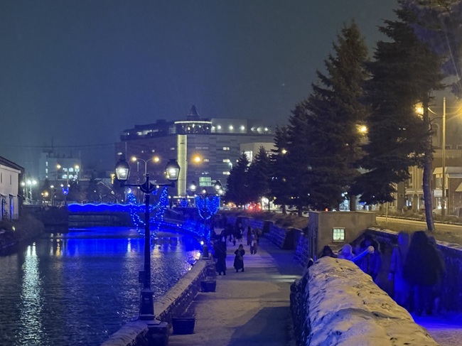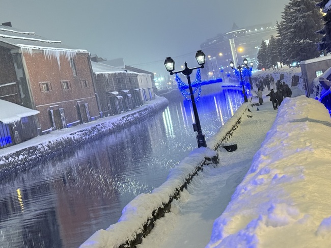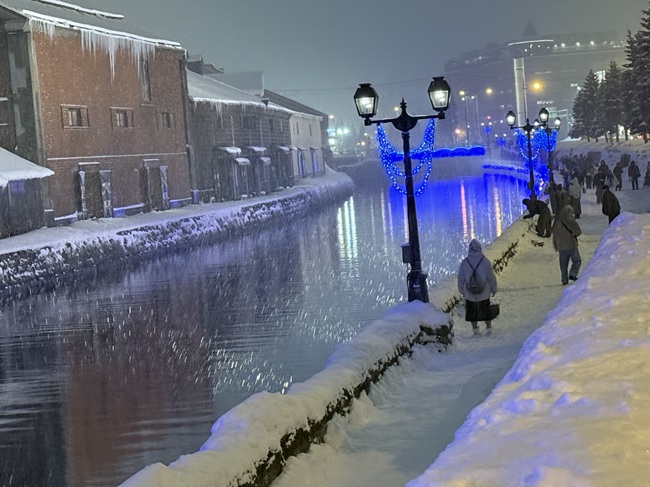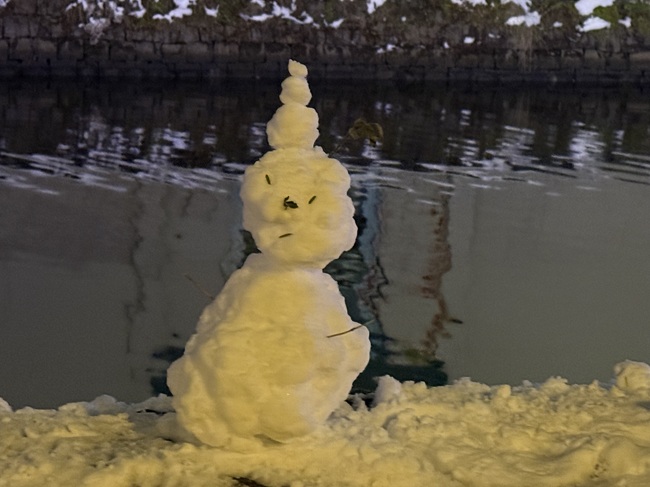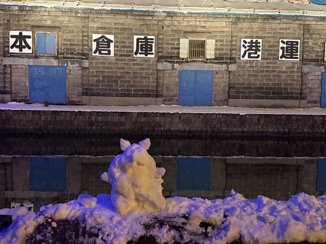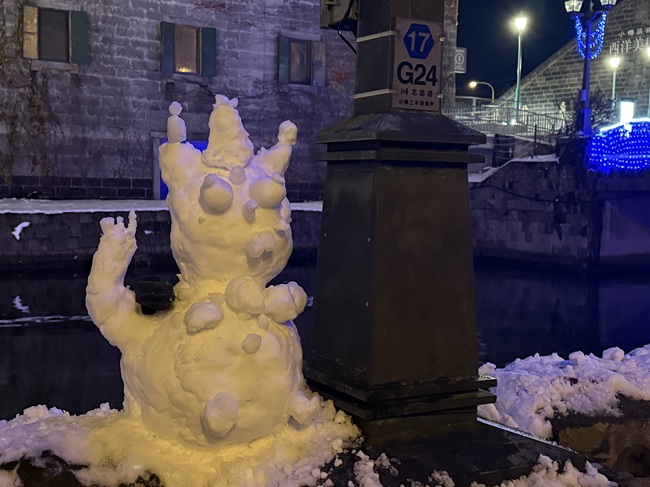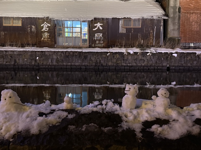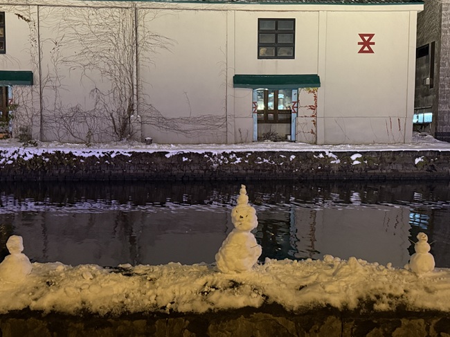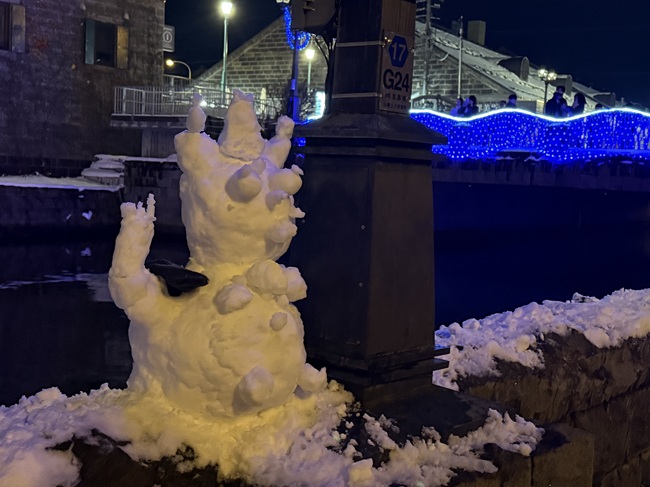 2025年11月1日(土)から小樽運河(浅草橋~中央橋)にて 何時にライトアップされるかと毎日のように聞かれます。 一気に冷え込み、積雪量も12/14現在、小樽市内約40㎝になっています。 ・ 浅草橋から中央橋に向かう散策路で可愛らしい雪だるま達を発見しました。 ●点灯期間:2025年11月1日(土)~2026年1月31日(土) ●11月の青の運河…18:10頃