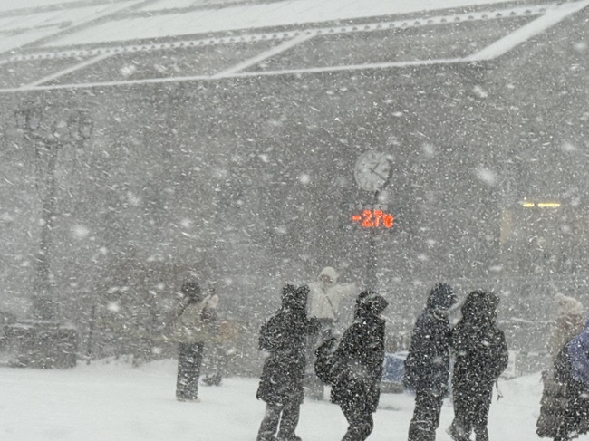 今朝は、細かい雪の降る寒い朝を迎えました。日中の最高気温はー1℃で、風雪・波浪の注意報が出ています。本日も外出の際は、