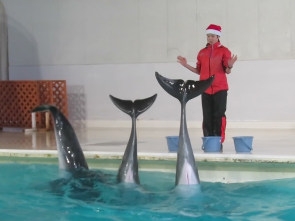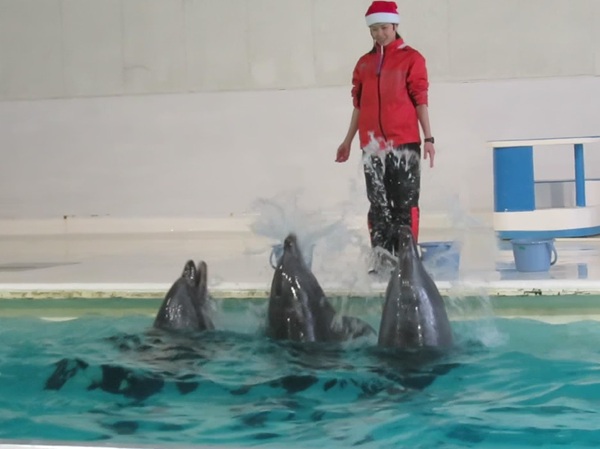 / ・ ●そのほか・ ●「いるかのじかん」クリスマスバージョン いるかのじかん (①11:00 ②13:00 ③15:00) 1日3回行う「いるかのじかん」では、 クリスマスのBGMに合わせてイルカたちがパフォーマンスを行います。 バンドウイルカ「レンカ」の育児を優先するためお休みしていた 雄チームロッキー、ノア、アポロが出てくる時間帯もあります。 誰が出ているかは、当日来てのお楽しみです。 ※動物の状況によっては、内容が変更になる場合があります。 ・ こちらは雄チームのロッキー、ノア、アポロです。