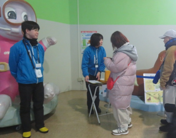 / ・ ペン太ホール 最後はペン太ホールで温かいお茶を飲みながら 飼育員さんの話を聞きました。質問も受け付けました。