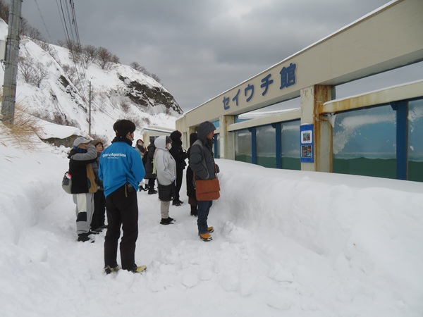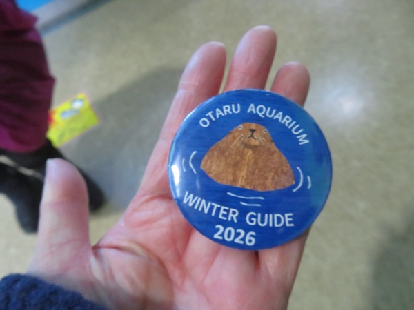 2026年1月28日(水)に開催されたおたる水族館ウインターガイドに行ってきました。 冬になると海がしけて危険なので、冬期間は海獣公園を閉鎖していますが、 このウインターガイドでは海獣公園の生き物に会うことができる特別なツアーです。 既にウインターガイドは全回定員に達していますが、 当日キャンセルが出た場合は、おたる水族館Facebookなどでお知らせしています。 ・ ◍おたる水族館ウィンターガイド ・日程:2026年1月21日(水)、25日(日)、28日(水)、 2月1日(日)、4日(水)、8日(日)(全6回) ・時間:13:20 ~ 14:20(60分) ※13:10頃より受付を開始します。 ・受付・集合場所:本館1階ウミガメ水槽前 ・定員:15名(小学5年生以上で雪の坂道を自力歩行できる方) ・参 加 費:1,000円(当日受付時に現金でお支払いください。) ※事前予約制 冬期営業期間にウィンターガイドを行います。 トドへの給餌体験など海獣公園を中心に展開いたします。 冬の日本海の自然の厳しさを感じつつ、 生きものたちのいきいきとした様子をご覧いただきます。 時には野生のトド、アザラシ、オジロワシなどを観察できるかもしれません。 また、ご希望の方対象に魚の水槽解説や管理設備もご案内いたします(無料 15分程度) ・ ・ ●ウミガメ水槽前集合・スタート 受付を済ませウインターガイド2026の缶バッジをもらいました。