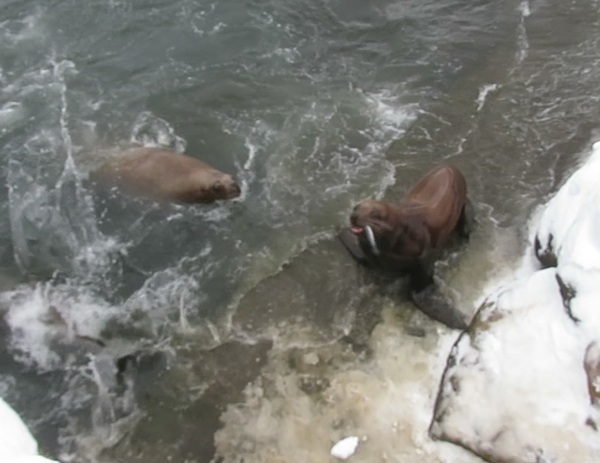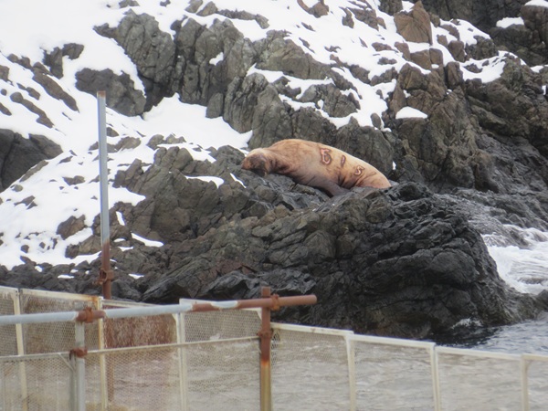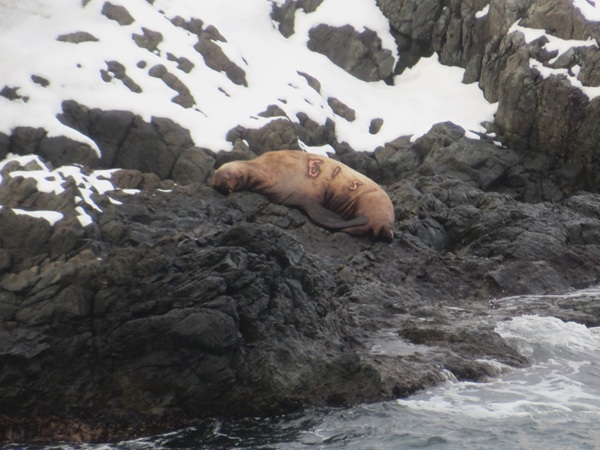 ・ 下りの途中で、岩場にいる野生のトド1頭が見えました。