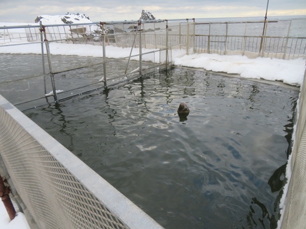 ・ ・ 10月中旬からこちらのプールに移動。 冬にアザラシをこのプールに移動している理由を教えていたもらいました。