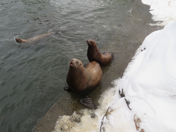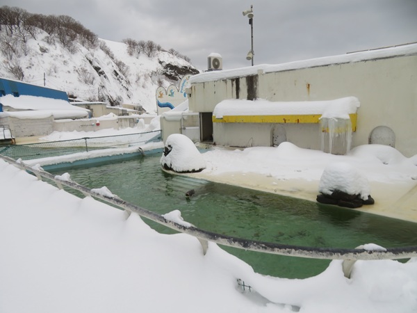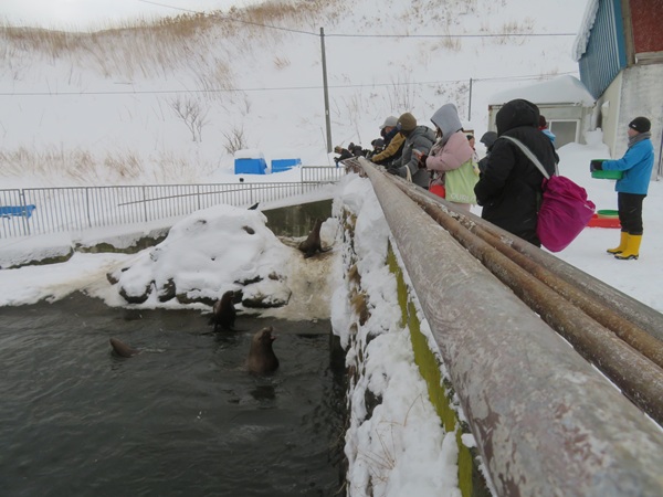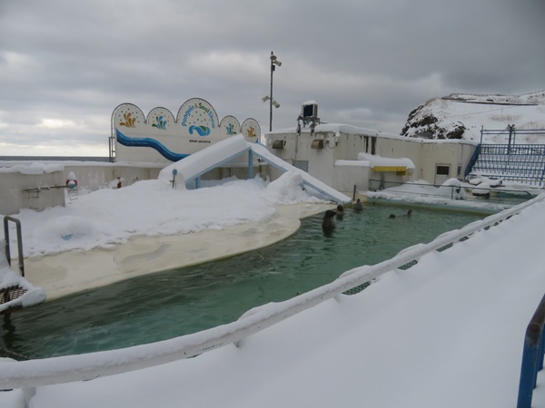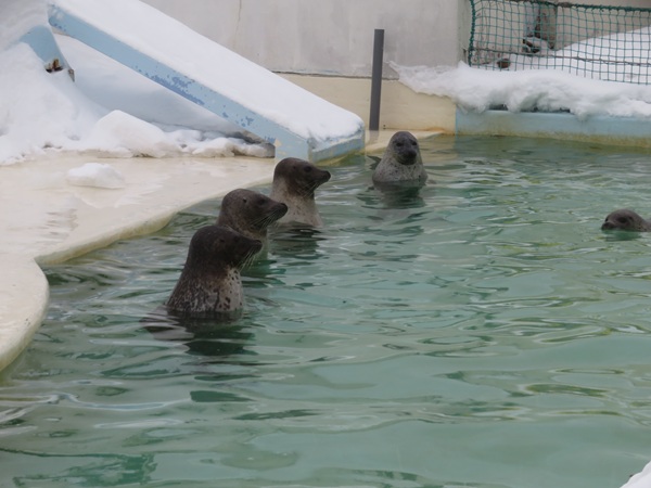 ・ ・ アザラシの「冬だけのプール」 ゴマフアザラシとゼニガタアザラシの見学。