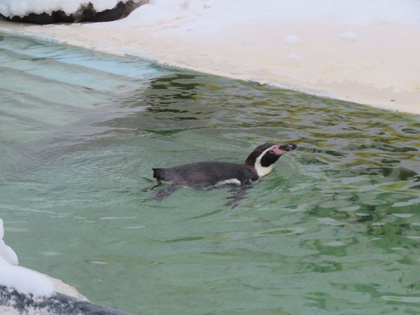 ・ 寒さが苦手な「フンボルトペンギン」1羽だけ泳いでいました。