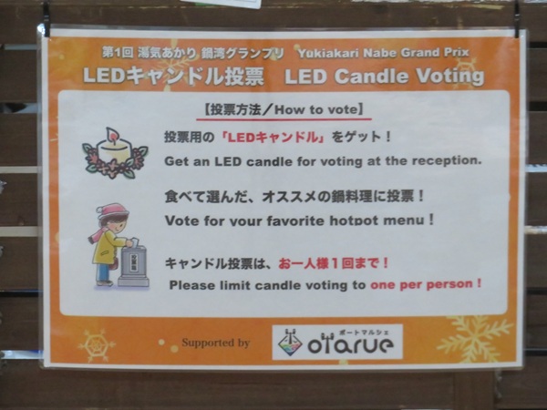 会場ではお好きな鍋メニューに「LEDキャンドル投票」が行われます。
