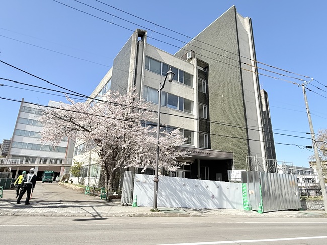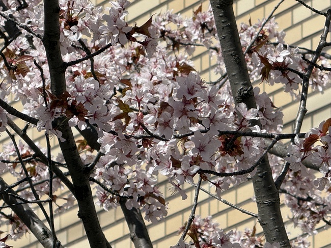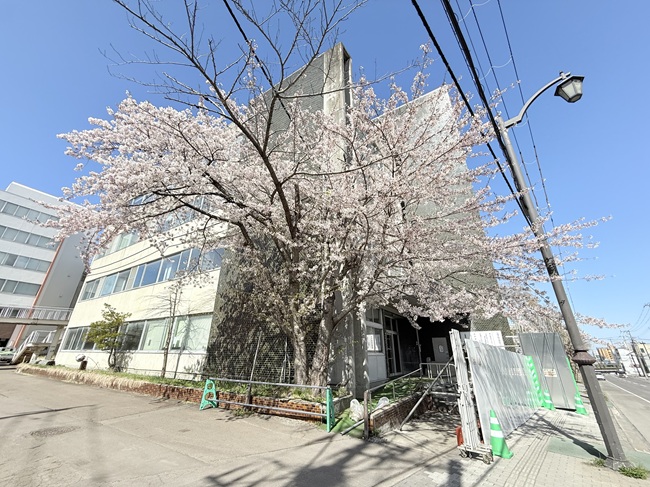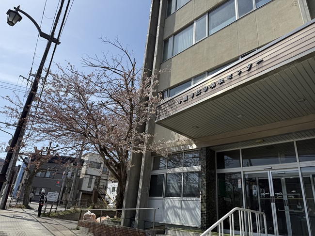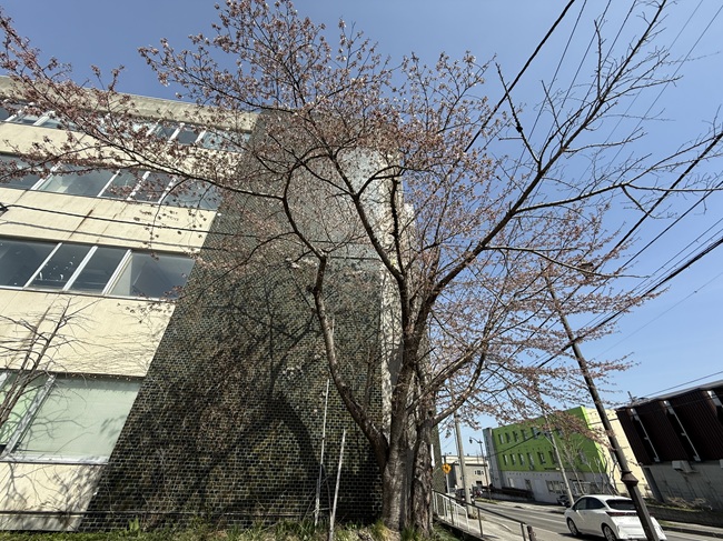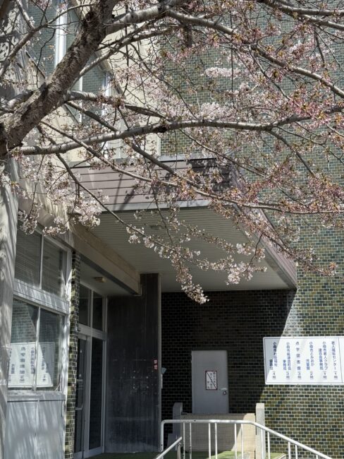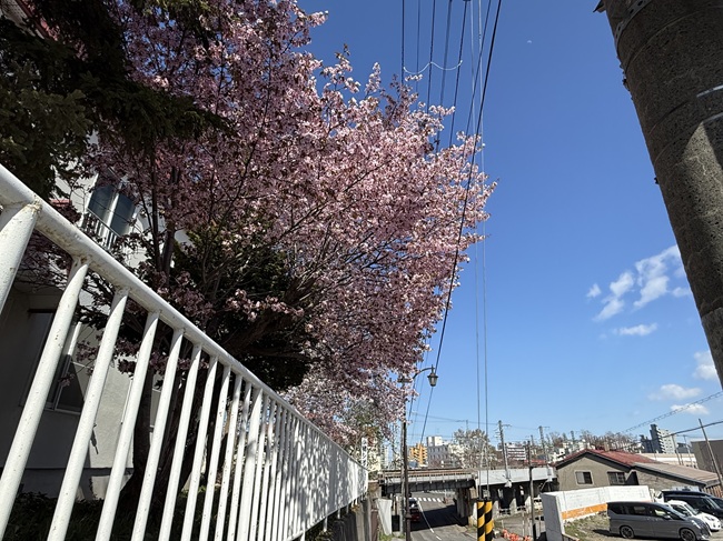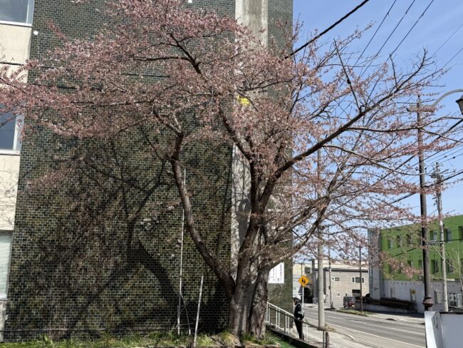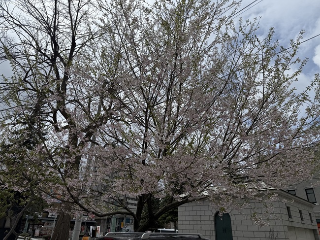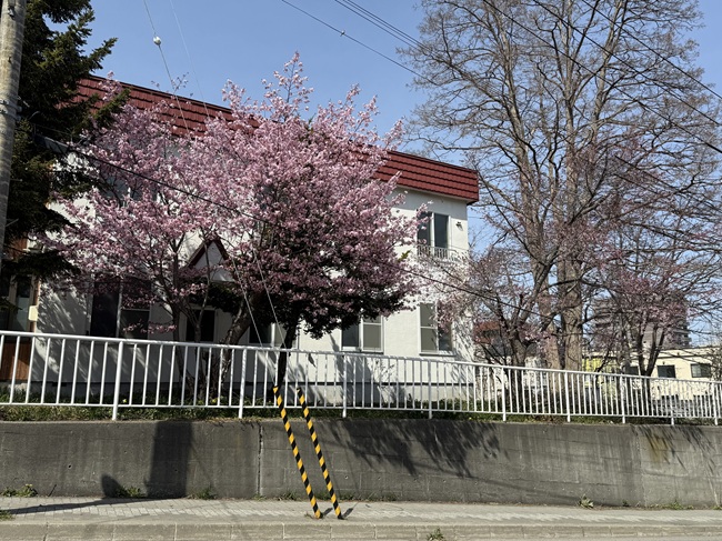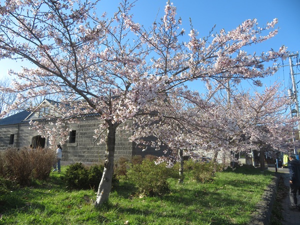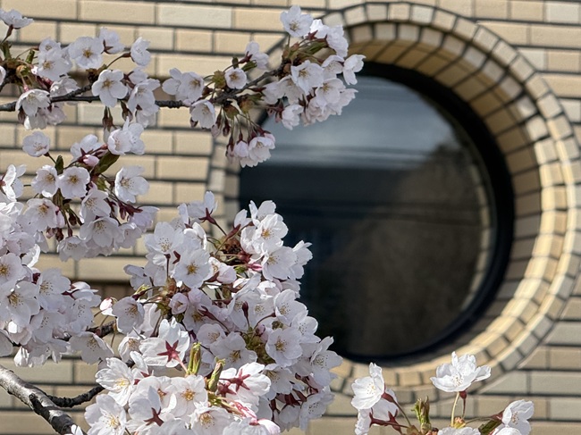 2026年4月23日(木)の小樽市総合博物館本館の桜です。 正面入り口横の桜は満開。 蒸気機関車アイアンホース号の線路沿いの桜など 屋外展示場でも桜が咲いていました。 ・ 正面入口 4月19日(日)よりも満開の桜が増えていました。