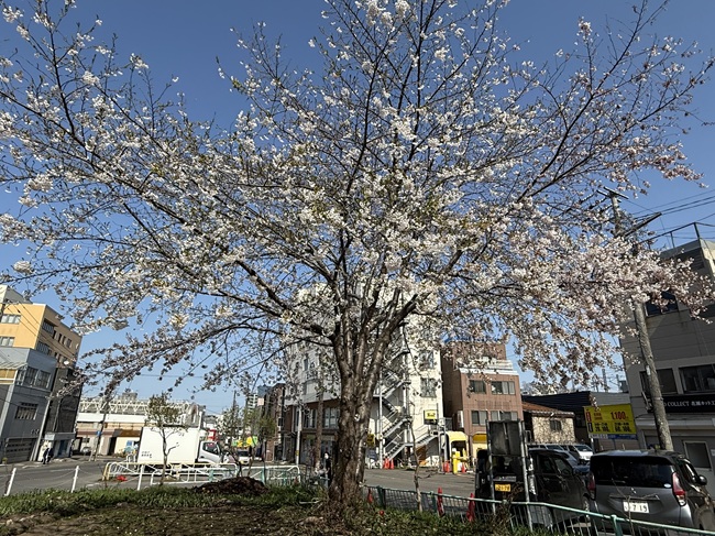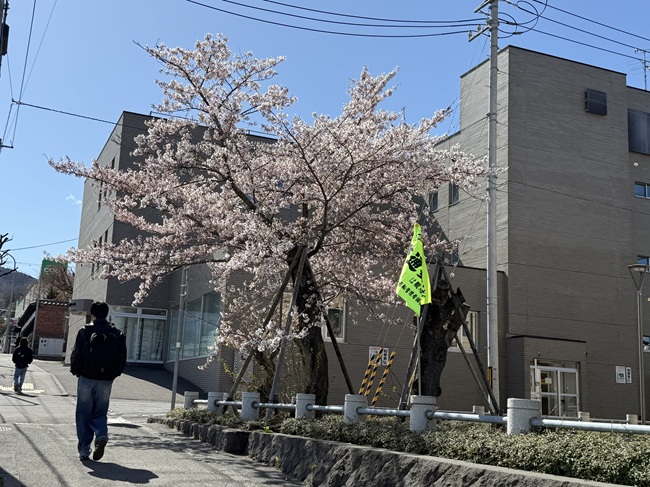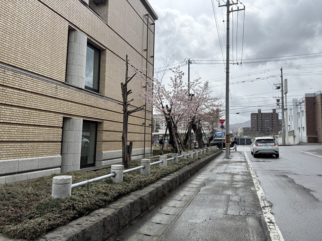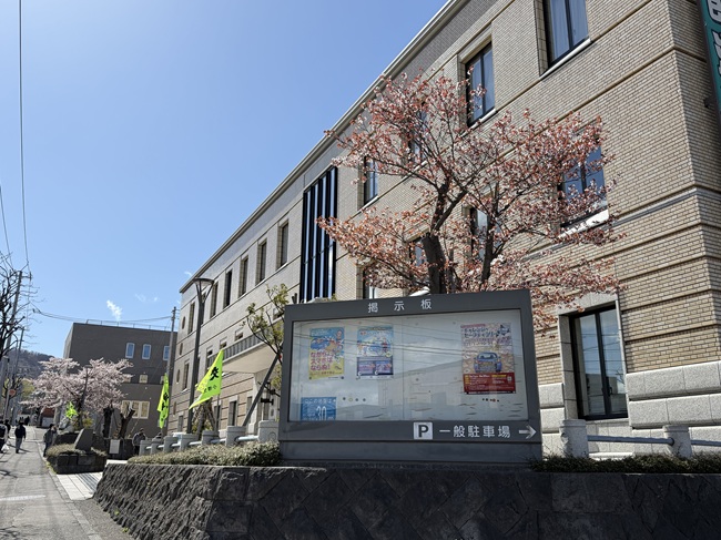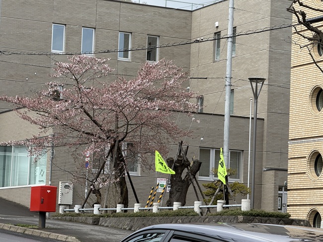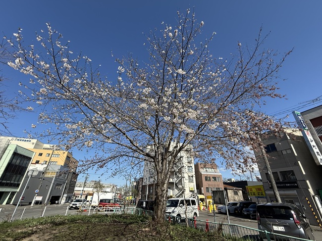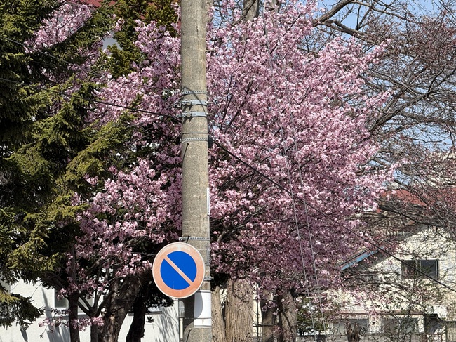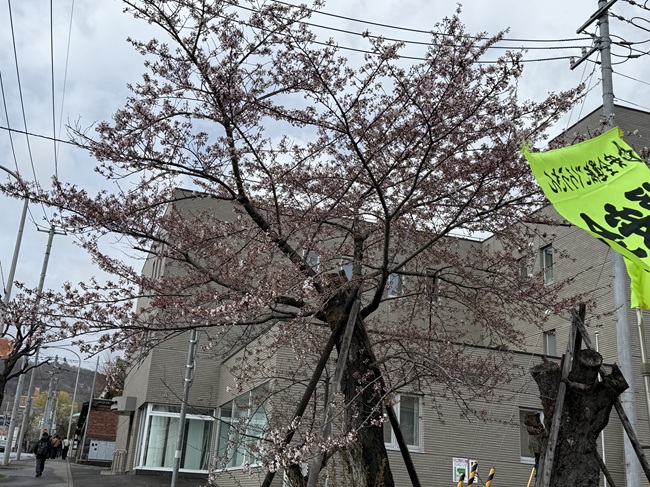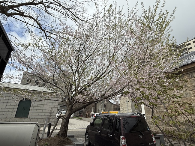◎追記(2026.4.25) 小樽市建設部建設事業室公園緑地課より 手宮緑化植物園臨時駐車場のお知らせです。 手宮緑化植物園駐車場は大変混雑いたしますので、 2026年4月25日(土)~5月10日(日)までタクシー・身障者専用にしています。 臨時駐車場をご利用願います。 2026年4月24日(金)より、 臨時駐車場P1(厩稲荷神社向かい)、 臨時駐車場P2(旧末広中学校向かい)、 臨時駐車場P3(手宮公園野球グラウンド横)を開設しております。 詳細はこちら / / 2026年4月23日(木)の手宮緑化植物園の桜です。 「手宮緑化植物園案内図看板」横の桜が満開。 ソメイヨシノとエゾヤマザクラが交互に植樹している桜坂の 一番上のエゾヤマザクラが開花していました。 そのほかの桜も咲き始めているので 4月25日(土)、26日(日)ごろが見ごろかもしれません。 4月23日(木)平日の3時ごろですが駐車場は満車状態でした。 手宮緑化植物園の駐車場は12台、手宮陸上競技場となりの駐車場は約40台ありますが、 この時期はすぐ満車になります。 駐車まちの車で渋滞しますのでお気をつけください。 ・ ・ 「手宮緑化植物園案内図看板」横の桜