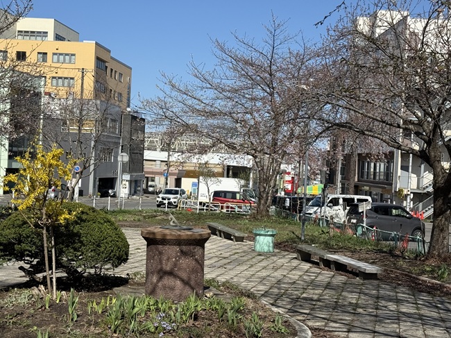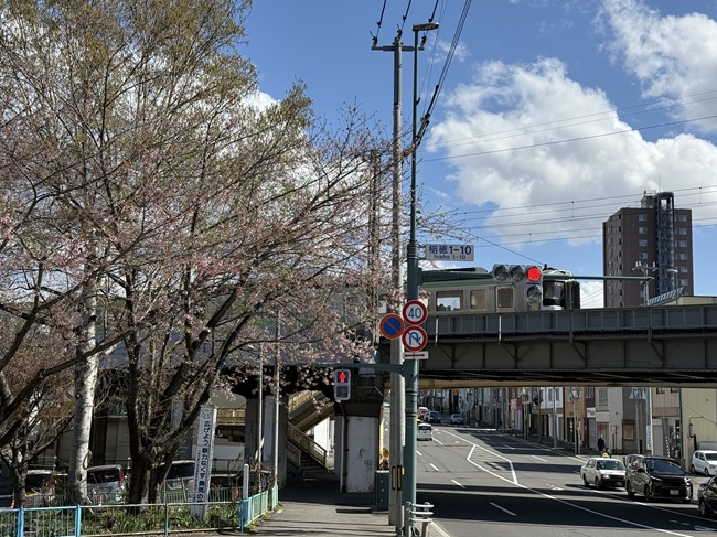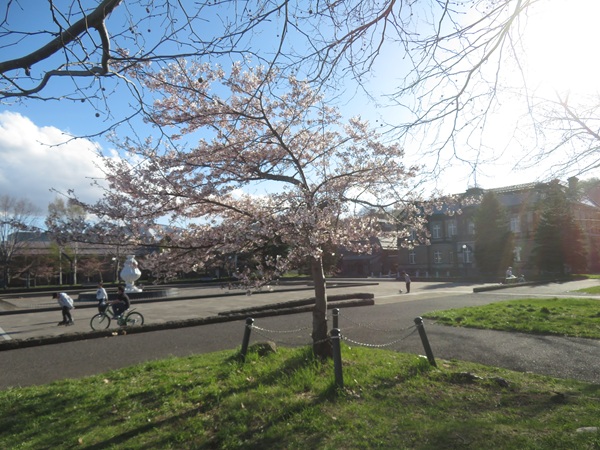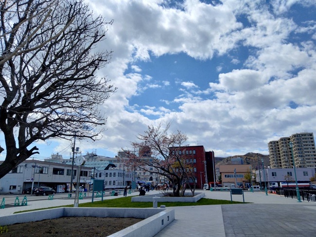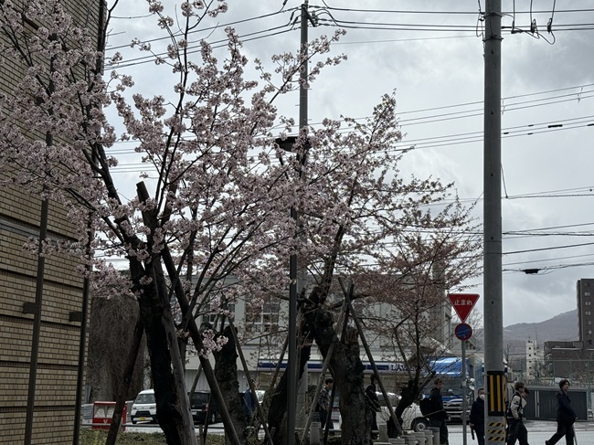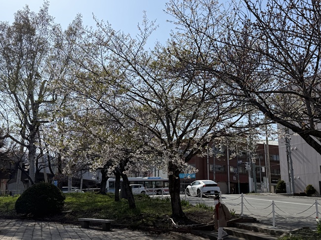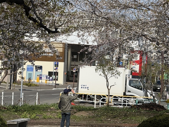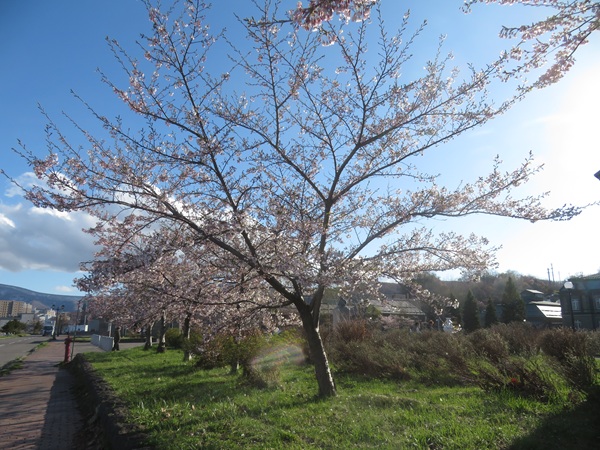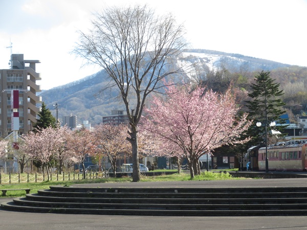 本日、午前中の南小樽駅さくら状況です。 少し花は咲いてきてますが、まだまだつぼみもたくさんあります。 天気が良くなり、日差しが出てきたら、もう少し花が咲きそうです。 外国人、観光客も桜のしたで、写真を撮っていました。