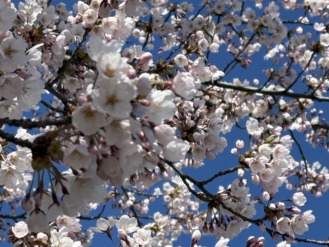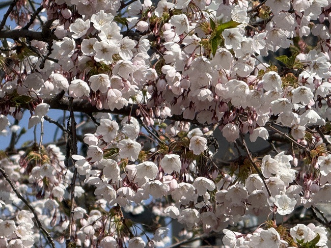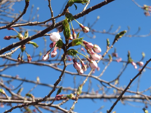 本日、午前中の天上寺、さくらの状況です。 つぼみはピンク色にいろづき、花は少し咲いている状況です。 気温が肌寒いので、見頃はもう少し気温が上がらないと、満開にはならないと思います。