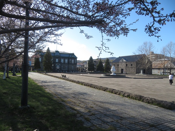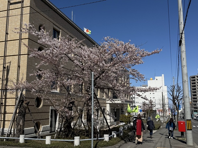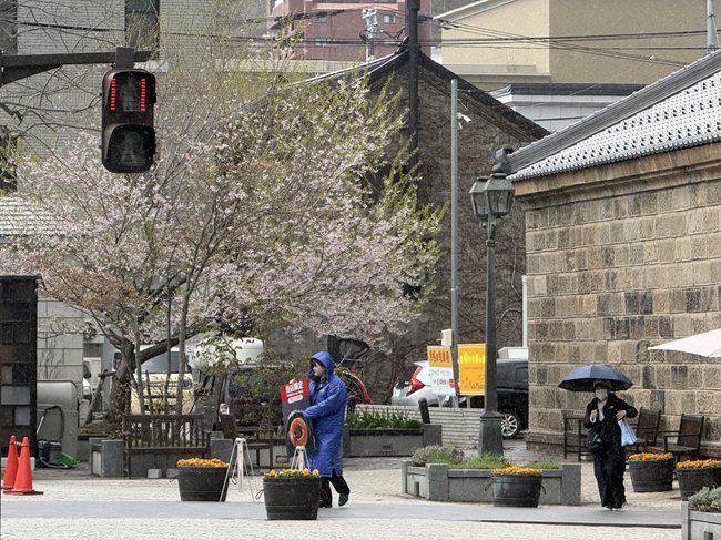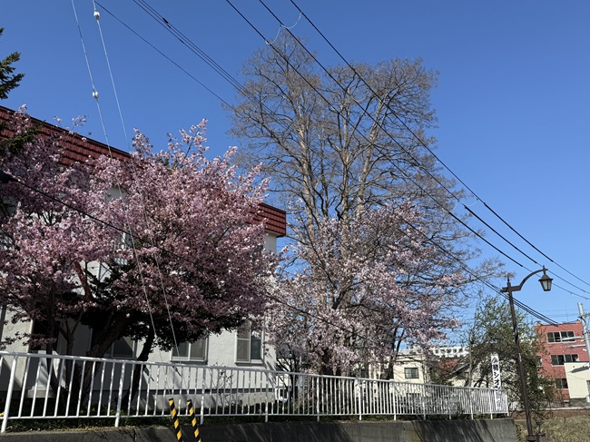 4月21日午前10時頃と23日の午後2時頃の小樽警察署の桜です。