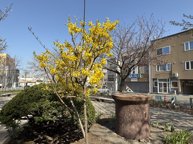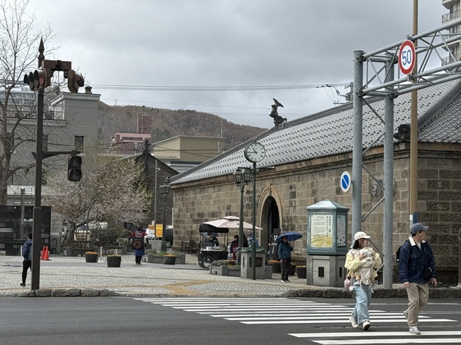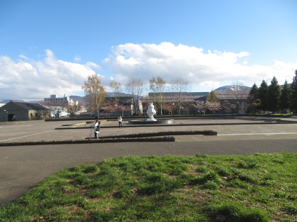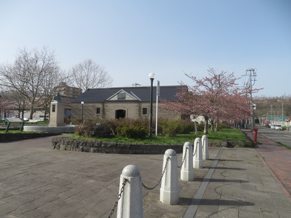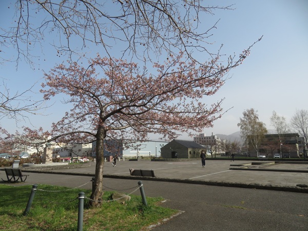 4月24日午前10時半過ぎ、ルタオ運河プラザ店前庭にある、