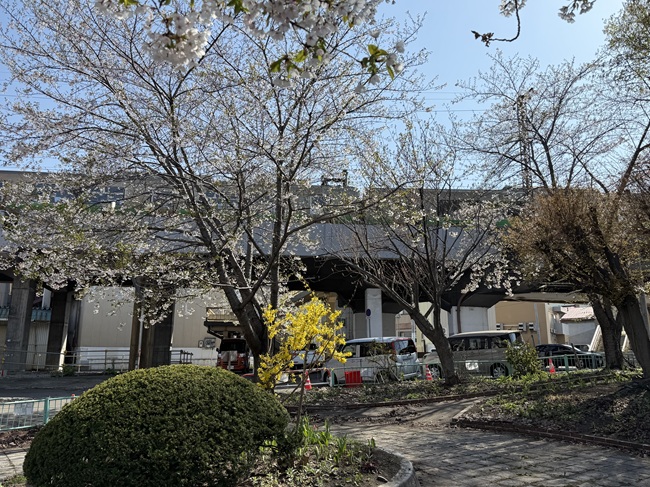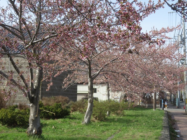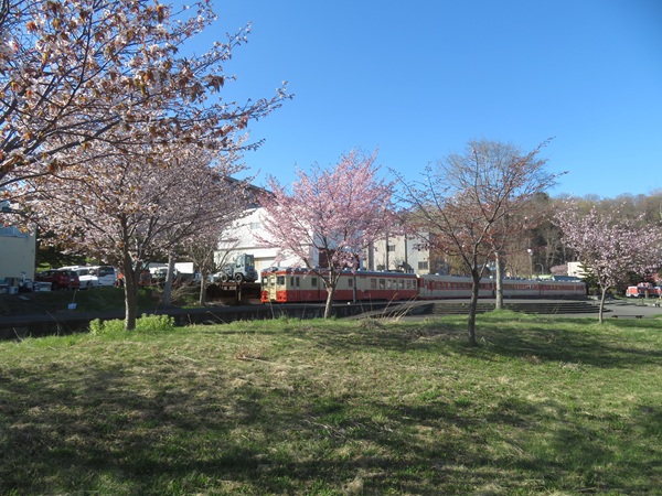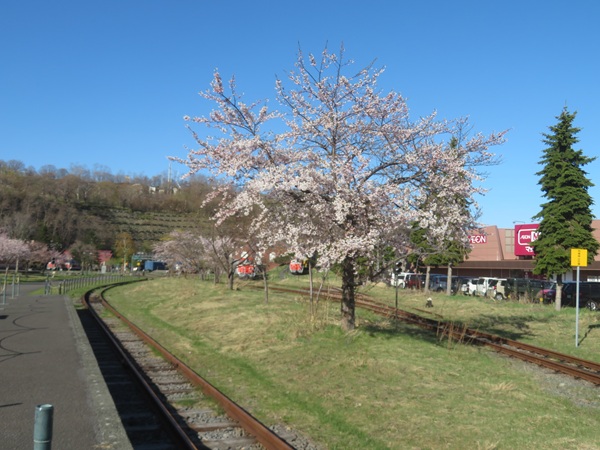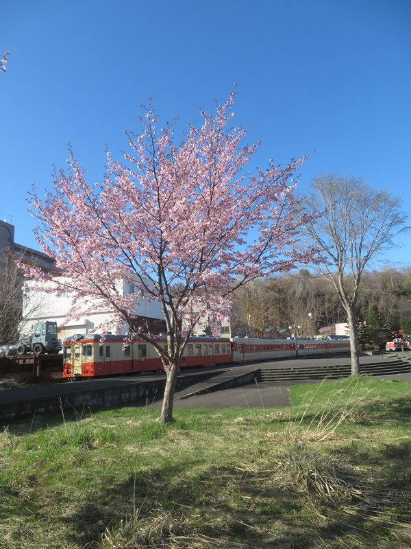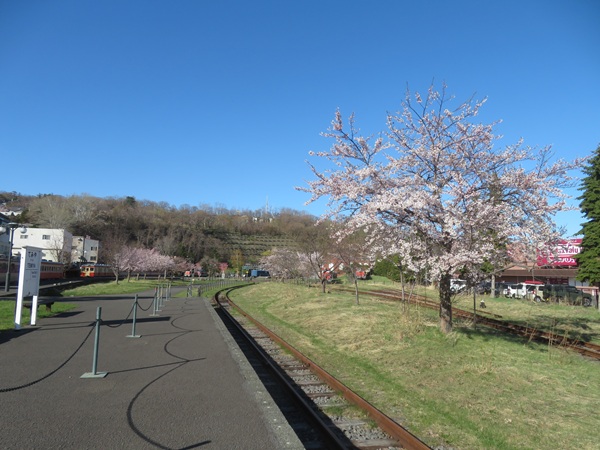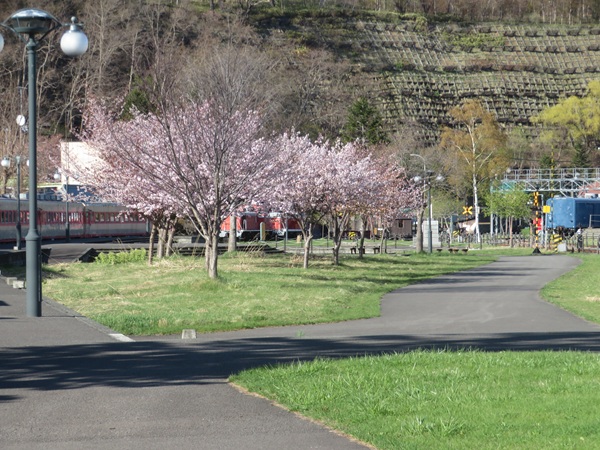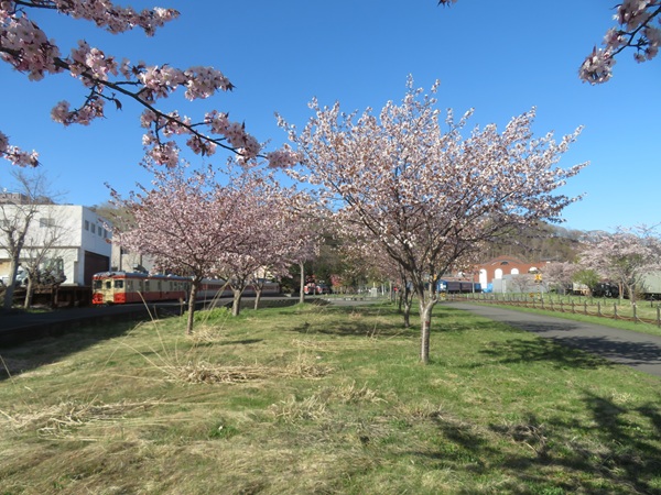・ ・ 蒸気機関車アイアンホース号の線路沿いの桜も咲いていました。