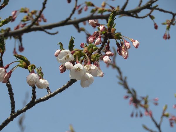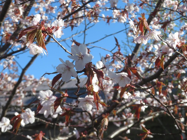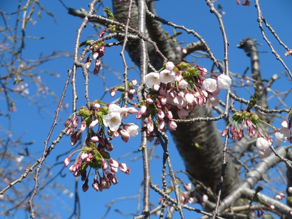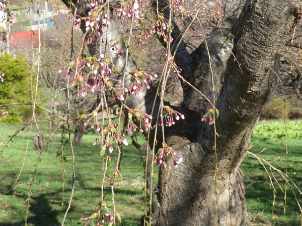 ・ ・ シダレザクラも数輪花を咲かせていました。