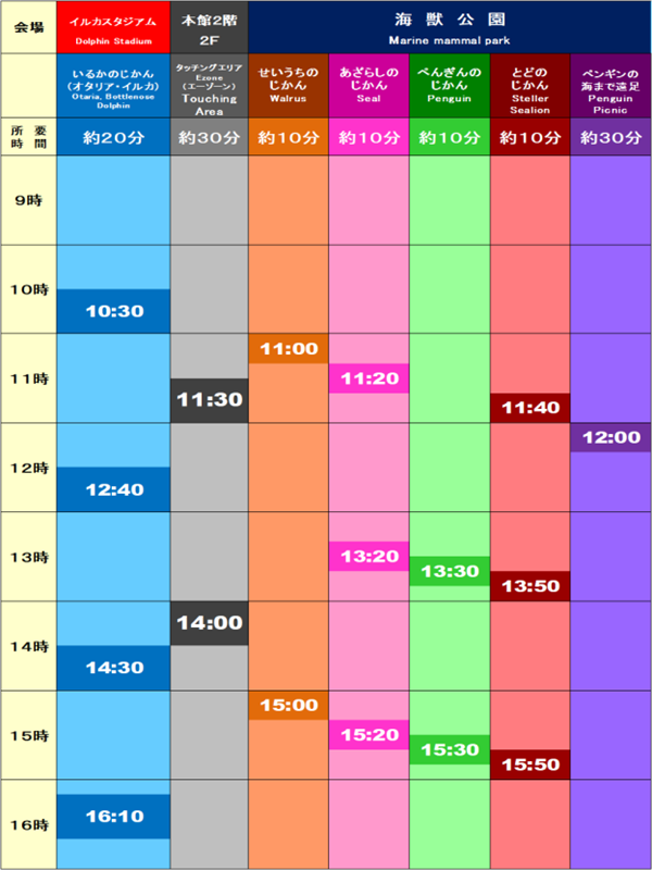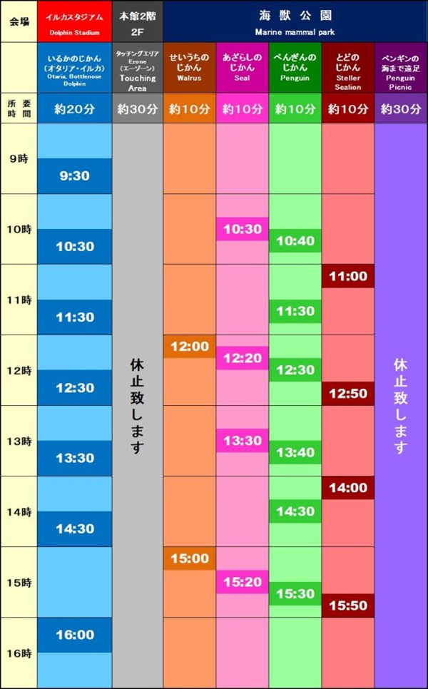 おたる水族館のゴールデンウィーク期間中の営業についてご案内いたします。 2026年4月25日(土)~5月1日(金)までは通常営業です。 2026年5月2日(土)~5月6日(月・振休)は30分早く営業を開始し、 イベントタイムも増やしてより多くのお客様にお楽しみいただけるようにいたします。 同期間に開催予定のイベント等もご紹介します。 ・ ・ 1.営業時間のご案内 対象期間:4月25日(土)~5月6日(水・振休) ≪4月25日(土)~5月1日(金)≫ 通常通りの営業時間です 【水族館】 9:00~17:00 【遊園地(祝津マリンランド)】 10:00~17:00 【駐車場の開扉時間】 8:40 ≪5月2日(土)~5月6日(水・振休)≫ 混雑緩和のため営業時間を変更いたします 【水族館】 8:30~17:00 【遊園地(祝津マリンランド)】 9:30~17:00 【駐車場の開扉時間】 8:00 / / 2.イベント「いきもののじかん」会場の入場制限 入場整理券は配布いたしません。 ただし、会場内の混雑状況によって整理員が次回のイベントへのご案内を行う場合があります。 / / 3.期間中のイベント「いきもののじかん」について 4月25日(土)~5月1日(金)は通常通りのイベントタイム 5月2日(土)~5月6日(水・振休)のイベントタイムを増やします。 ペンギンの海までの遠足、タッチングエリアは休止いたします。 ・ ◎4月25日(土)~5月1日(金)「いきもののじかん」