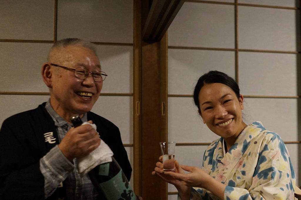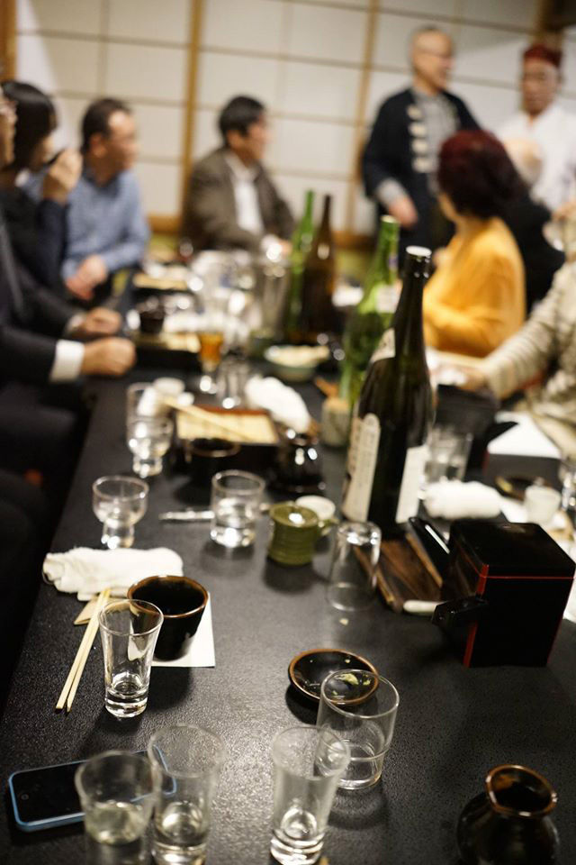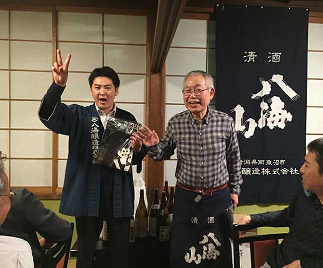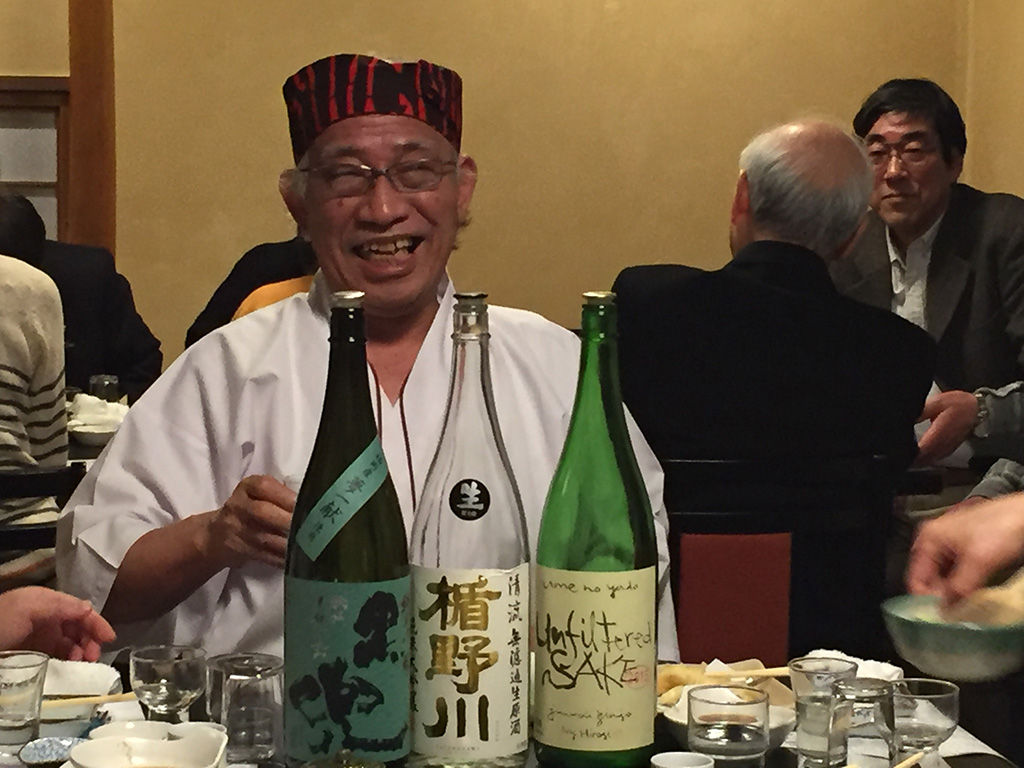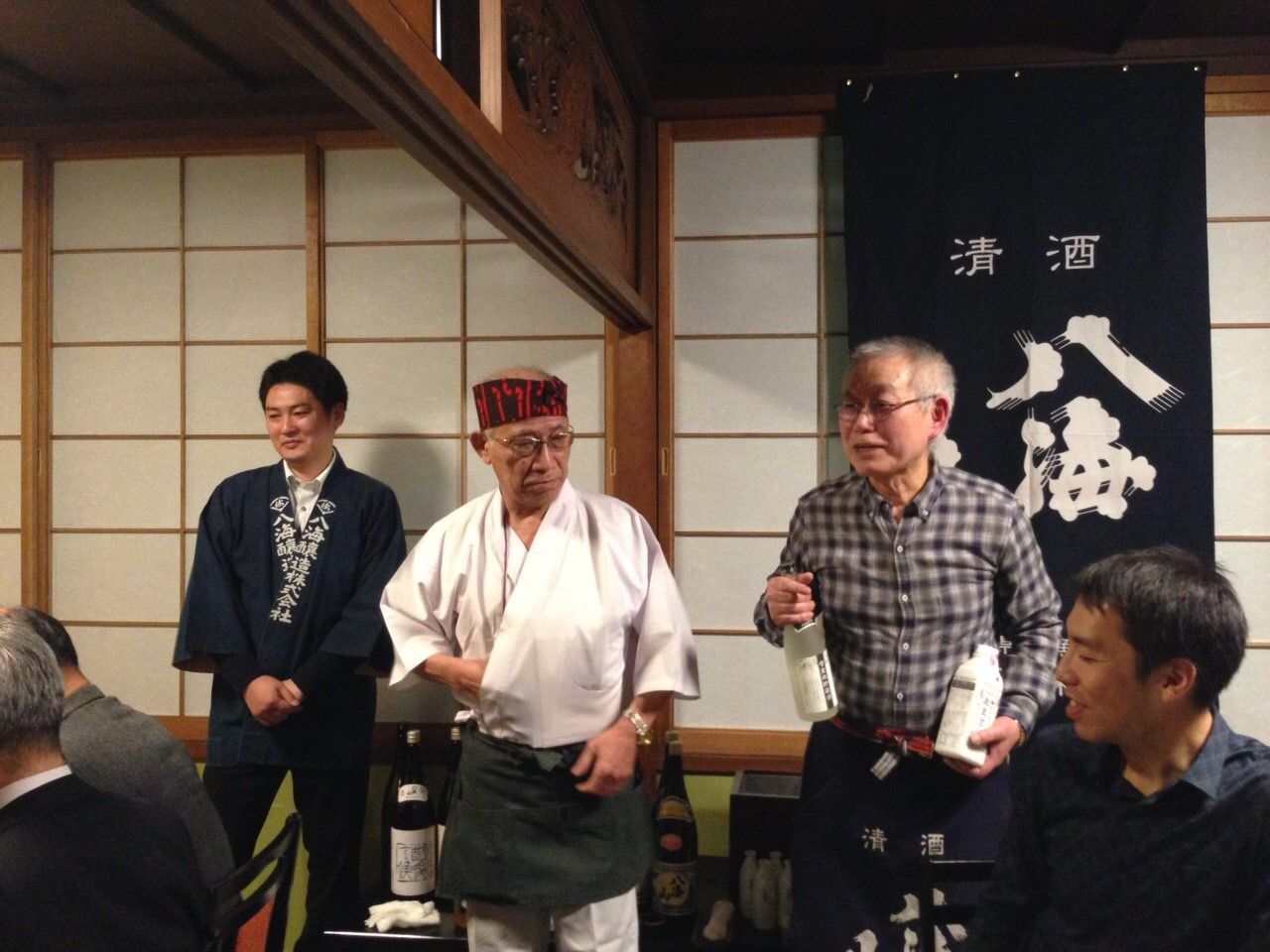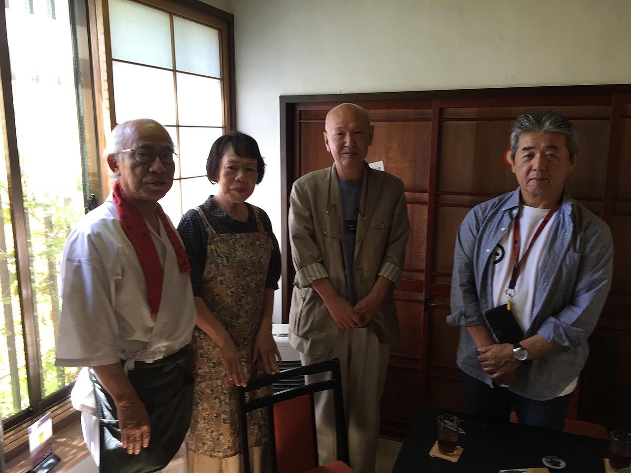 右から「小樽手打ちそば群来の会」代表・須藤雅司氏、そばもん・作者・山本おさむ氏、女将、蕎麦屋親爺。